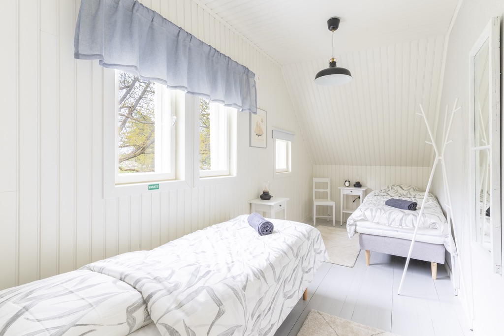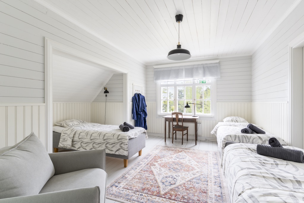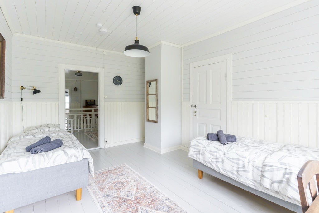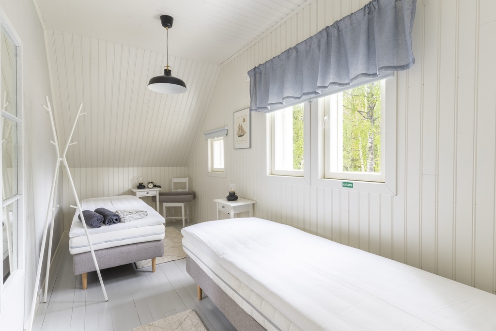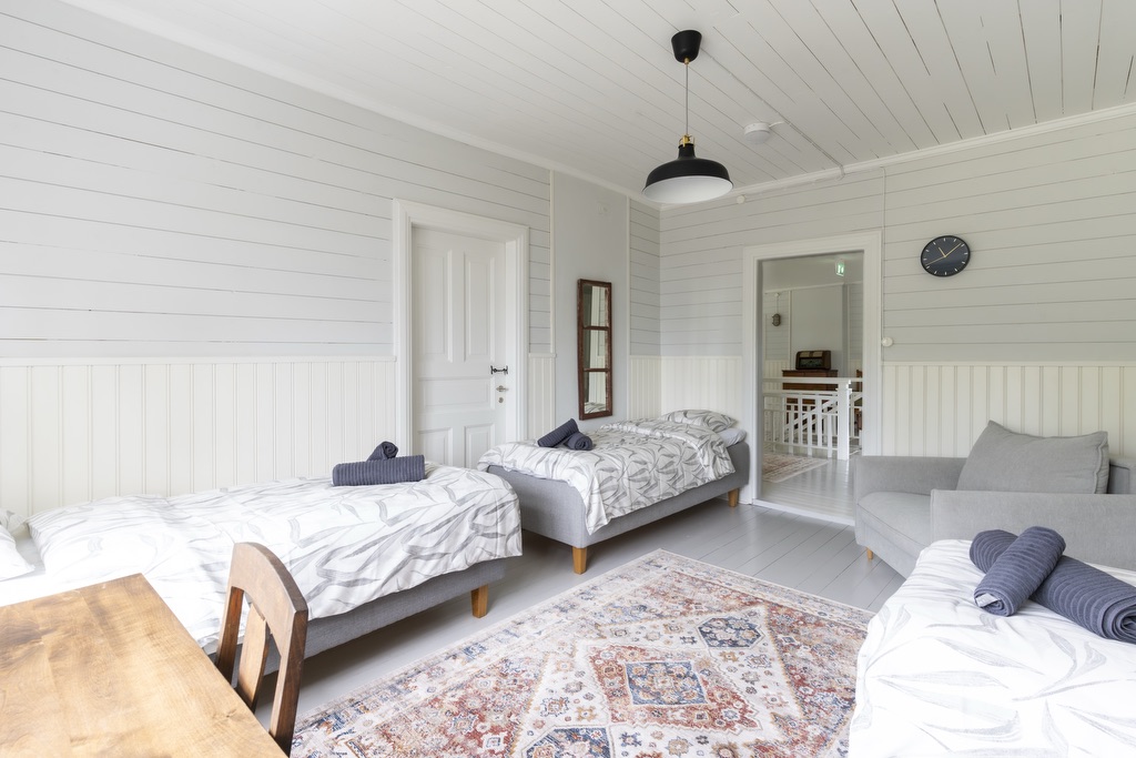 Makuuhuoneet on varusteltu yhden hengen vuoteilla, joita voi yhdistää vieraiden toiveiden mukaan parisängyiksi. Osasta makuuhuoneista löytyy myös vuodesohvia. Huoneisiin on mahdollista saada lisävuoteita. Huvila on varusteltu myös lasten matkasängyllä sekä muilla pienemmille yöpyjille tarvittavilla varusteilla. Huvilan alakerta on esteetöntä tilaa.